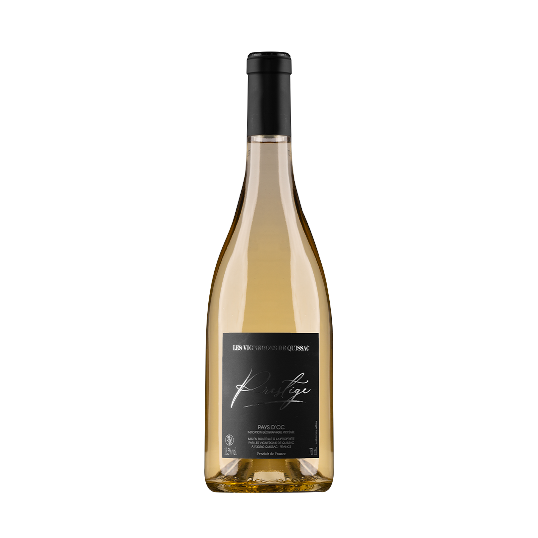 Ce vin est certifié IGP Gard et HVE (Haute Valeur Environnementale), reflet du savoir-faire des Vignerons de Quissac et de leur engagement en faveur d’une viticulture durable. Prestige Blanc, c’est l’alliance du terroir cévenol et de l’exigence artisanale.